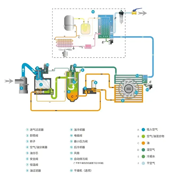 1. Startup stage: When the power button is pressed, the electronic control system will automatically start the lubrication system and cooling water system of the air compressor. Ag an am céanna, osclaíonn an comhla ionghabhála agus téann aer isteach ar an taobh istigh den phríomhaonad.