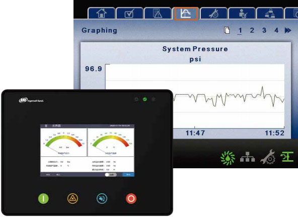Tá cumas rialaithe chumhachtach agus cianbhainistíocht ag giniúint nua rialtóirí Luminance Ingersoll Rand, rud a chinntíonn oibriú cobhsaí an chomhbhrúiteora agus ag an am céanna feabhsaítear éifeachtacht oibriúcháin agus bainistíochta an chomhbhrúiteora go suntasach.